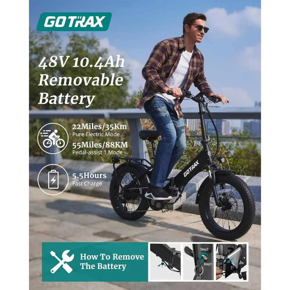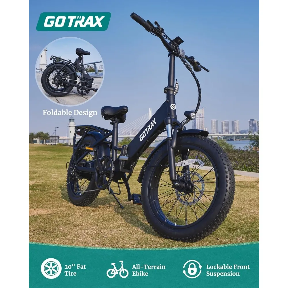 🚲【Foldable and Portable Design】This GOTRAX adult electric bike folds easily, reducing its size by over half for efficient storage. Fit it in your car trunk or take it on the subway for a hassle-free commute. Ideal for exhilarating outdoor adventures as well. (Folded size: 34.6*24*28.7inch)
