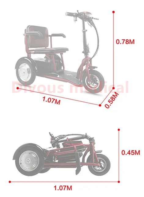 3 Wheel Portable Foldable Electric Mobility Scooter with Lithium Battery for Disabled and Elderly Tricycle