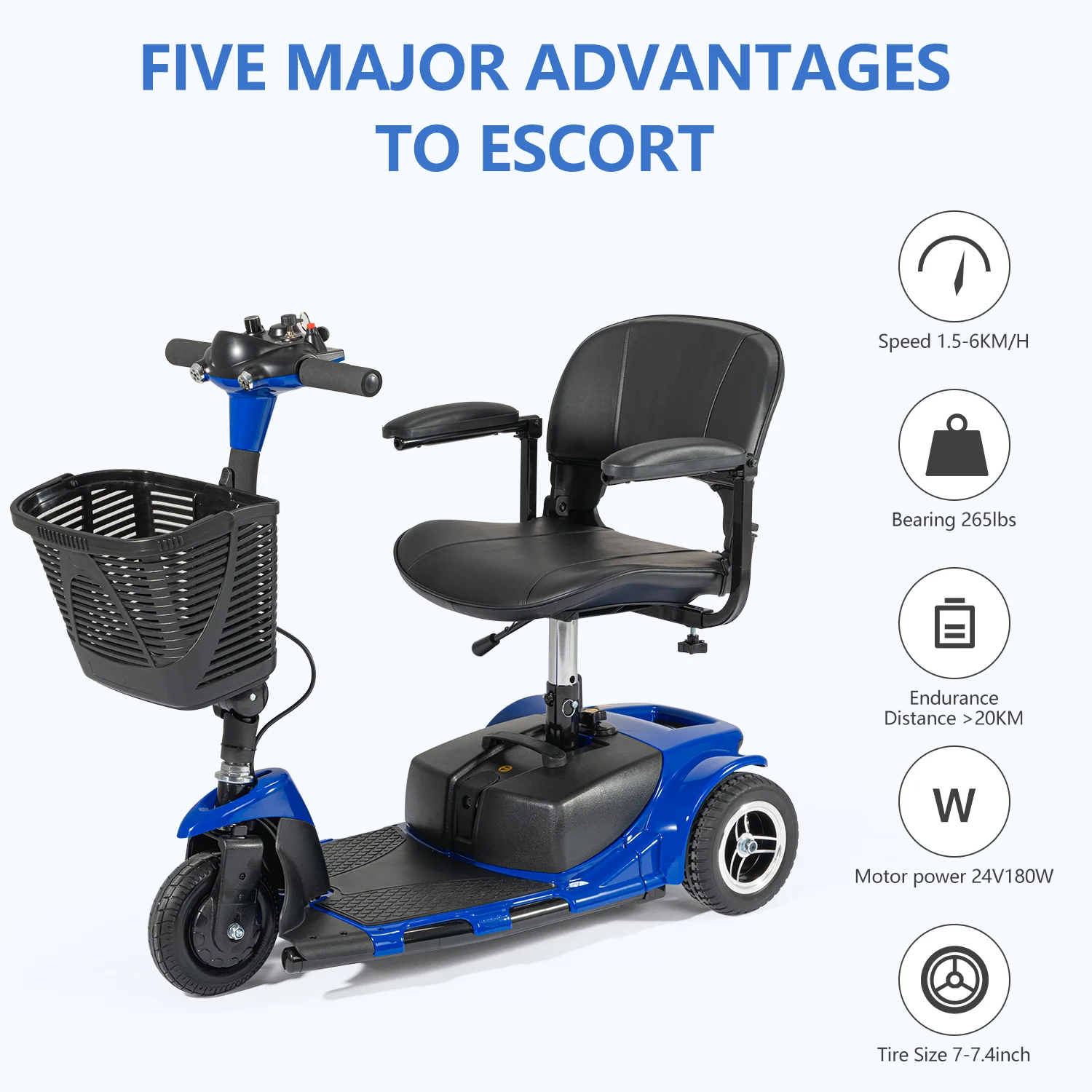 Be the first to review “3 Wheels Foldable Electric Car Mobility Scooter Power Wheelchair with Light Basket Collapsible Compact Travel Car Christmas Gift”