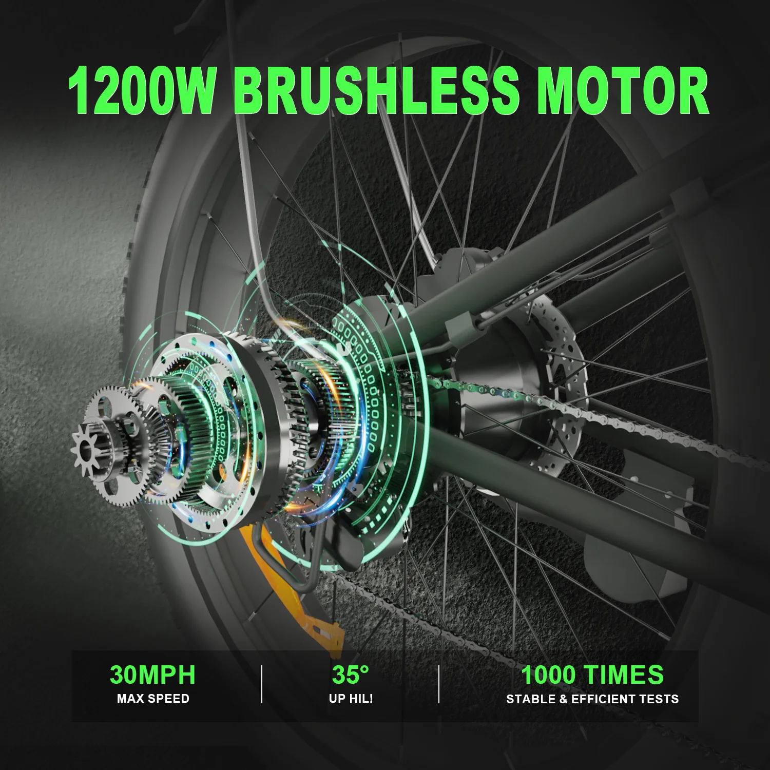 Motor de 1200W para paseos potentes.
