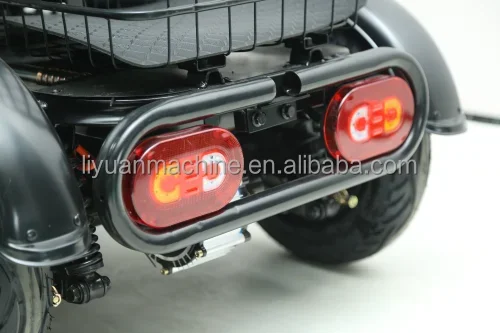 Standard configurationDrive and reverse modes, LCD display, three speed switch, front and rear turn signal, rearview mirrors, foot break.